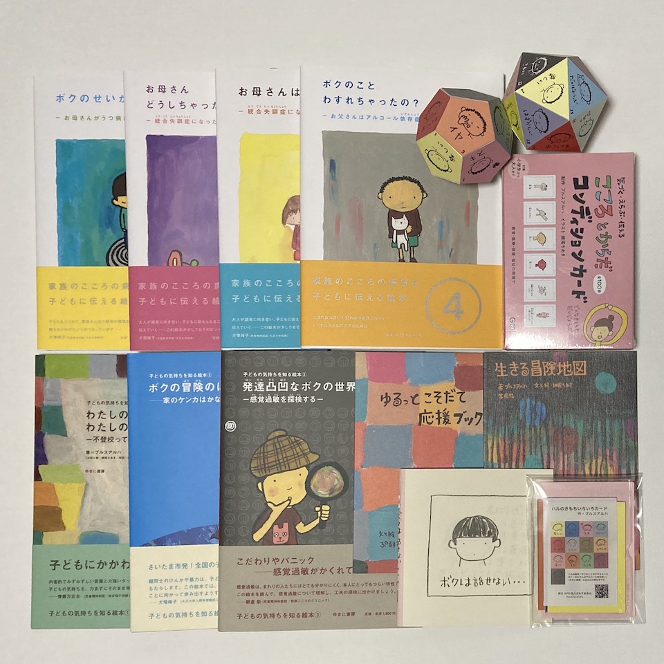 『家族のこころの病気を子どもに伝える絵本』シリーズ(ゆまに書房)をはじめとする心理教育絵本、コミュニケーションに役立つ絵カードなど、「必要だけどこれまでなかった」コンテンツを制作しています。